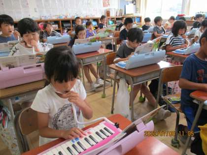 音楽の授業では、これまで鍵盤ハーモニカを使って、『ド・レ・ミ・ファ・ソ』までの音を使って演奏してきました。