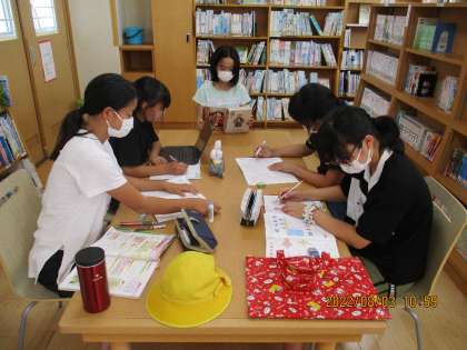 子供たちが読書や宿題をしに、図書室開放に来ていました。 次回の図書室開放は、8月5日(金)です。
