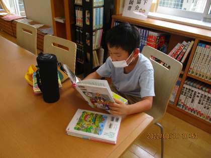 読み終わった本を返却し、新しい本を借りたり、宿題をしたりする子がたくさん来ていました。