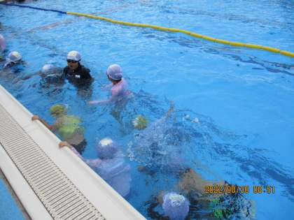 この夏の間に、どれだけもぐったり、泳げるようになったかを、みんなと一緒に確認しました。