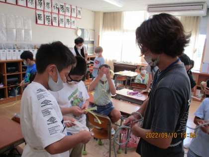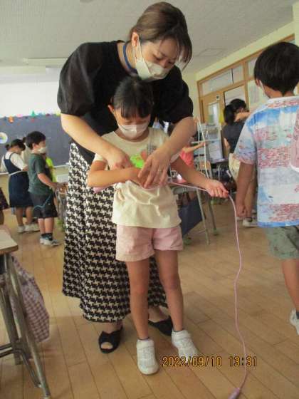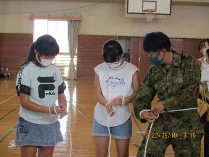 もやい結びや、ロープを簡単に束ねる方法などを教えていただきました。