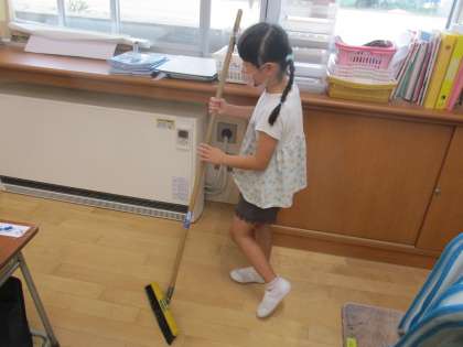 2年生さんが頑張っている姿を見たり、放送で取り上げられているのを聞いたりして、きらきらタイムをがんばる「きらきらさん」が増えてきました。今日は教室だけでなく、玄関やトイレまで行って掃除をしていました。みんなの学校をきれいにするために、自分でできることを考えて進んで取り組んでいます。はなまるです!