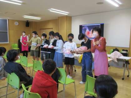 助産院の方を講師に迎え、いのちの授業を行いました。赤ちゃんが生まれるまでのことをたくさん教えていただきました。お腹の中にいるときから新生児までの赤ちゃんの人形を抱かせていただき、子供たちは重さも感じながら、温かい気持ちになっていたようです。また、出産の様子の映像を見せていただき、子供たちは生まれてくることのすごさを知ることができました。貴重な経験をすることができました。