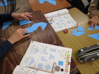 小さな三角形、大きな三角形などをつかって白鳥や家など様々なものをつくりました。