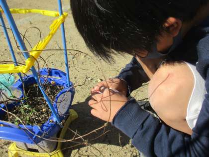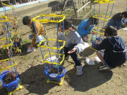 今日は、あさがおの種をとりました。たくさんの種をとることができました。とった種は、来年の新一年生にプレゼントします。