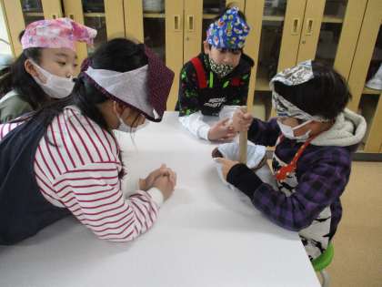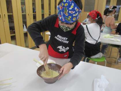 夏に育てた枝豆を乾燥させ、大豆にした後、この日は『きなこ』に姿を変えようと、子供たちは家庭科室で学習をしていました。