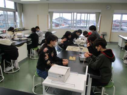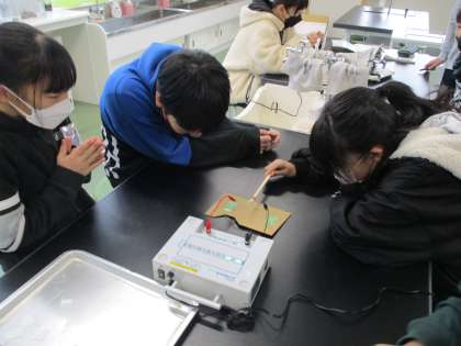 理科では、電気のはたらきについて学習しています。今日は、電熱線に電流を流すと発熱するか調べました。電流を流した電熱線に発砲ポリスチレンを置くと、溶けて切れていきます。子供たちは、切れていく様子をじっくりと見ていました。電気は熱に変わることが分かったようです。