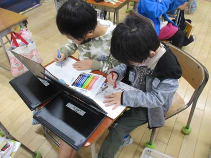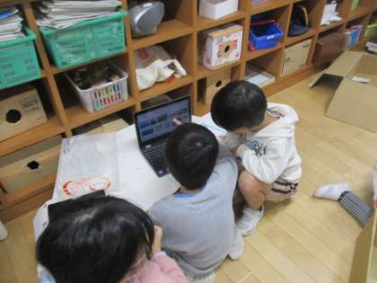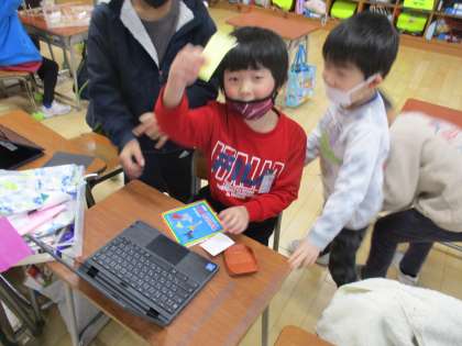 射的屋さんや食べ物屋さん、釣り屋さん等、友達と協力しながら楽しいお店を作っています。