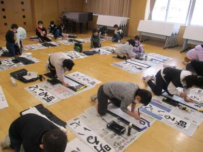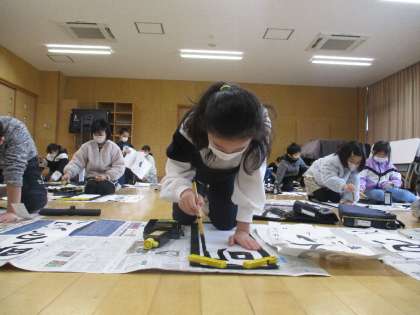 書き終わった後、周りを見て静かに墨で汚れた床をふく姿もありました。