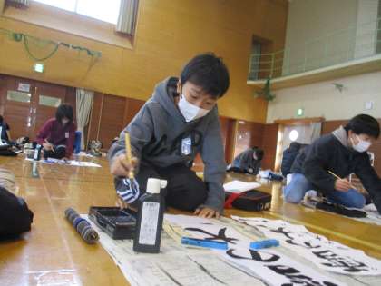 冬休みの練習の成果を発揮し、きれいな字で書初めをしました。
