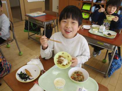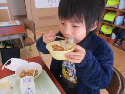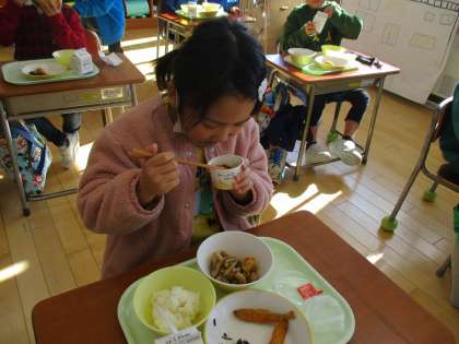今日から給食が始まりました。3学期初めての給食は納豆です。ねばねばと戦いながら、美味しそうに食べていました。