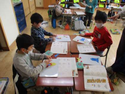 決められた形や数の色板を使って、お題の形をつくる学習をしました。