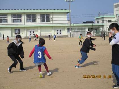 ポカポカと温かく、気持ちのいい日だったので、グラウンドいっぱいをつかって氷鬼をしました。