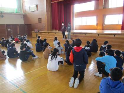 今日は、4年生と交流会をし、ドッジボールをしました。4年生相手ですが、6年生の子供たちは本気で戦っていました。4年生もさすが上学年で、スピードがあるボールを投げる子が多く、6年生と対等に戦っていました。どちらも全力でドッジボールができ、楽しかったようです。
