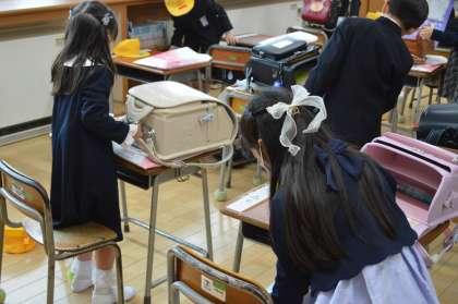 新しいランドセルに自分の持ち物を片付け、帰りの準備もばっちりでした。