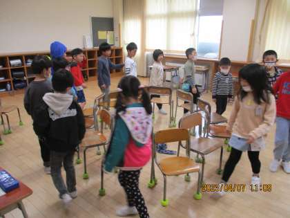 1学期のめあてを決めたあとは、いす取りゲームをして楽しみました。
