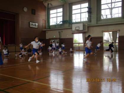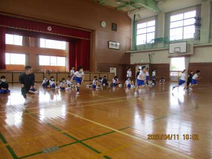 座った姿勢や、しゃがんだ姿勢などからダッシュして、体を動かしました。