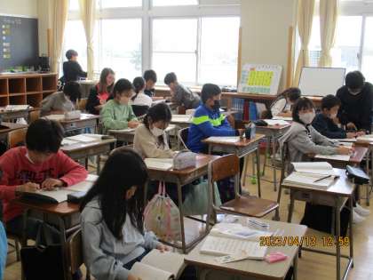 代表委員会の間、教室に残っている子供たちは、自習をしました。