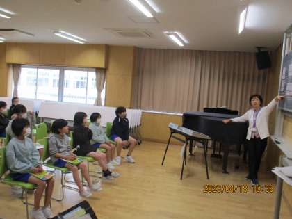 音楽専科の先生と一緒に、リズム遊びを楽しみました。