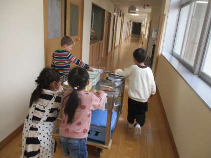 1年 給食後のお片付け 公開日 2023/04/19 更新日 2023/04/19 1年 給食後に、給食当番の子供たちと一緒に給食室までワゴン車を片付けに行きました。給食室では、調理員さんに元気よく「ごちそうさま」の挨拶ができました。