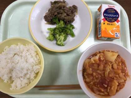 3年生教室では、アメリカンビーフソテーのおかわりじゃんけんで盛り上がっていました。