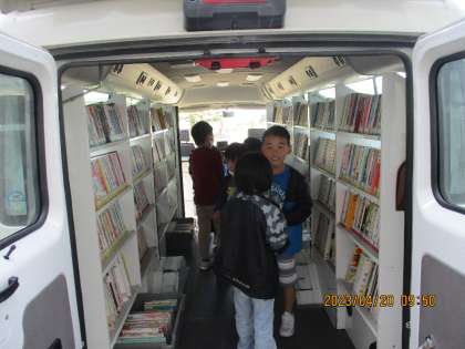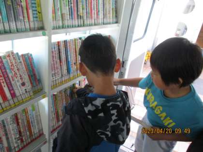 待ちに待った自動車文庫の日です。 本が大好きな子供たちは、楽しそうに本を選んでいました。