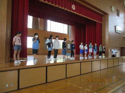 ぐんぐんタイムの時間を使って、明日行う児童会発足式のリハーサルをしました。