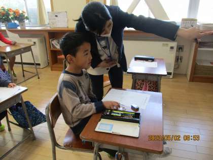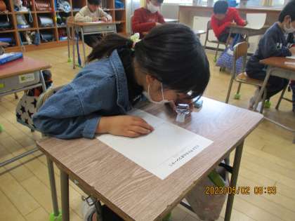 これから植える、トマトの種の観察をしました。 虫めがねで、くわしいところまで観察していました。