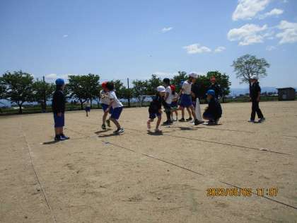 リレーの練習をしました。 中学年になり、バトンの渡し方も工夫しています。