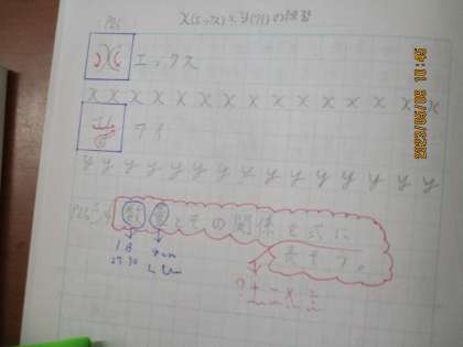 ついに「x」と「y」が出てきました。 一段と算数が難しくなってきました。