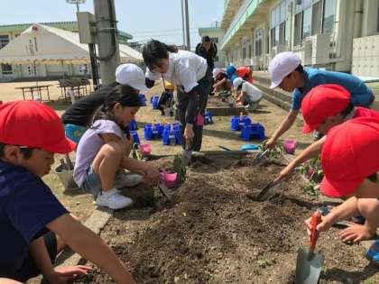 2年生がトマトとピーマンの苗を植えました。