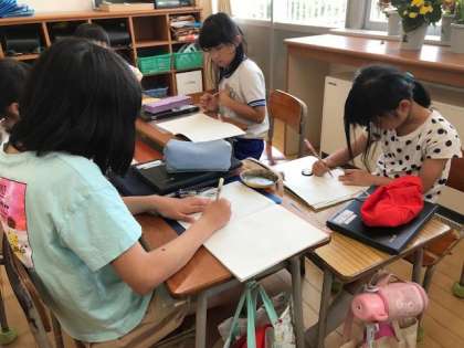 3年生は、理科でホウセンカやヒマワリ、フウセンカズラの種を観察しました。