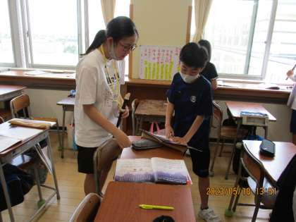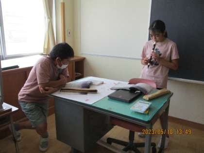 ペアになってリコーダーの練習をしました。