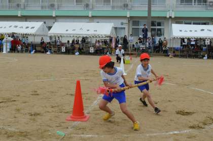 5・6年合同競技「走れ!回れ!台風の目!」です。