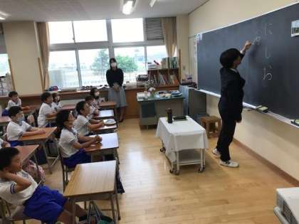 実習生 「まず、私の名前は…(黒板にひらがなと漢字で名前を書く)」