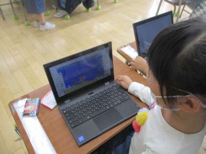 今日は、1時間目にはさみの使い方を学習し、2時間目にクロムブックでお絵かきをしました。