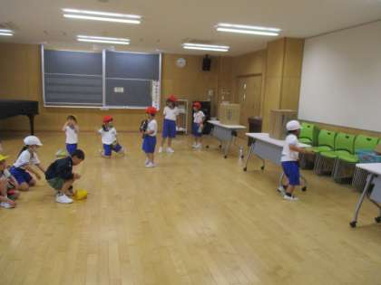今日は、技3「投げる」の銀メダル「段ボールの的に当てる」に挑戦しました。的に当たるよう一生懸命投げていました。