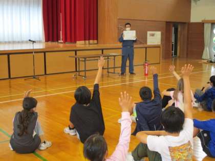 5年生はBFCバッジ授与式を行い、火災への対策や防火に関する興味関心を高めています。BFCクラブの一員としてバッジを安全帽につけ、これから真剣に防火を広める活動を取り組んでいきます。