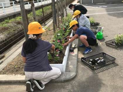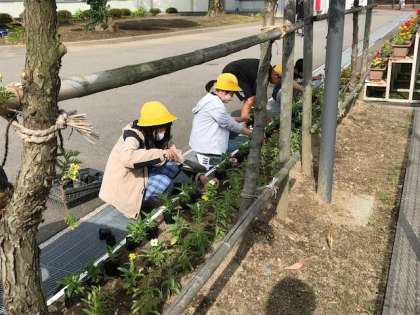 天気が崩れてくるので、今朝は子供たちが花壇に花の苗を植えてくれました。