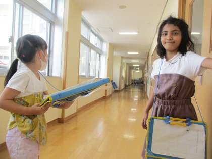 今日は学校探検にいきました!