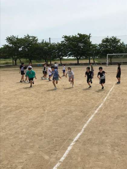 5年生が牛岳登山にチャレンジしている頃、倉垣小学校ではぐんぐんタイムで、1、2、3、4、6年生が元気よく走っています。