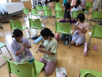 「歌のにじ」の曲のリコーダー演奏を、友だちと教え会いながら練習しました。