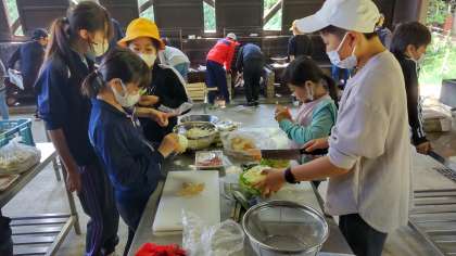 5年宿泊学習2日目 野外炊飯が始まりました