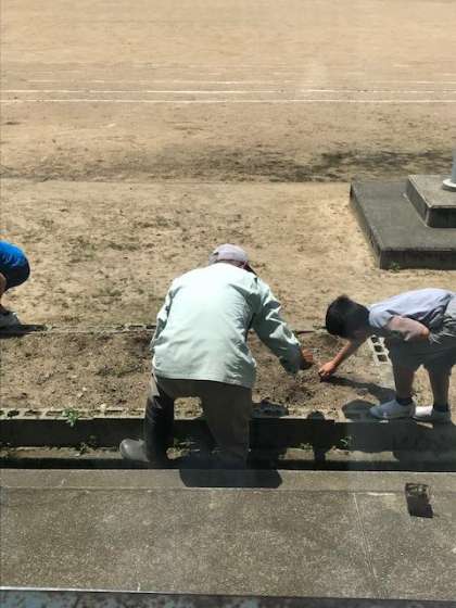 用務員さんに手伝ってもらいながら、一つ一つにしっかりと日光や風があたるように植えました。
