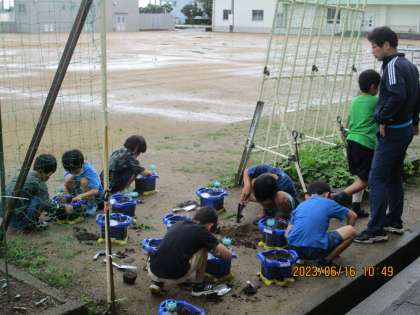 種から育てたミニトマトの苗を植木鉢に植え替えました。 ぐんぐん育っています。 もっと大きく育つといいですね。