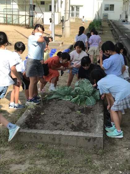 アオムシ出てきませんか− 公開日 2023/06/21 更新日 2023/06/21 学校から キャベツの中からアオムシ出てきませんかー 虫食いの穴だらけのキャベツだからきっとどこかにいるはずだと、3年生が一生懸命に探していました。