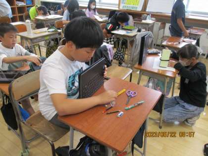 物を少しずつ動かしながら写真を撮り、コマ撮りの動画づくりをしました。