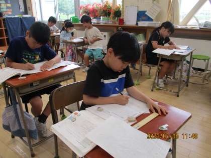 2年 国語 公開日 2023/07/05 更新日 2023/07/05 2年 町探検で見つけたもののメモを見ながら、文章のまとまりを「はじめ」「なか」「おわり」の順に考えて文の組み立てを意識して文章を書く練習をしました。