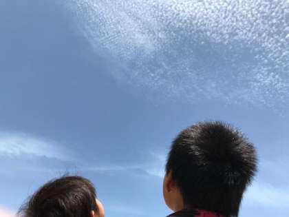 誘われた方向を見上げると、グラウンドの真上にだけ、うろこのような模様の雲が広がっていました。