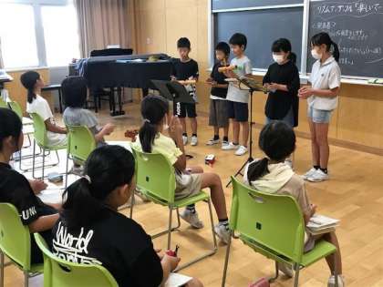 4年音楽 発表会 公開日 2023/07/07 更新日 2023/07/07 学校から 廊下をとおりかかると、4年生がリズムアンサンブル「楽しいマーチ」発表会を行っているので、覗いてみました。 どのグループも2つのパートのかけ合いをよく工夫しているので、聴き応えがありました。 よい生ライブ演奏に出会えてラッキー!でした。